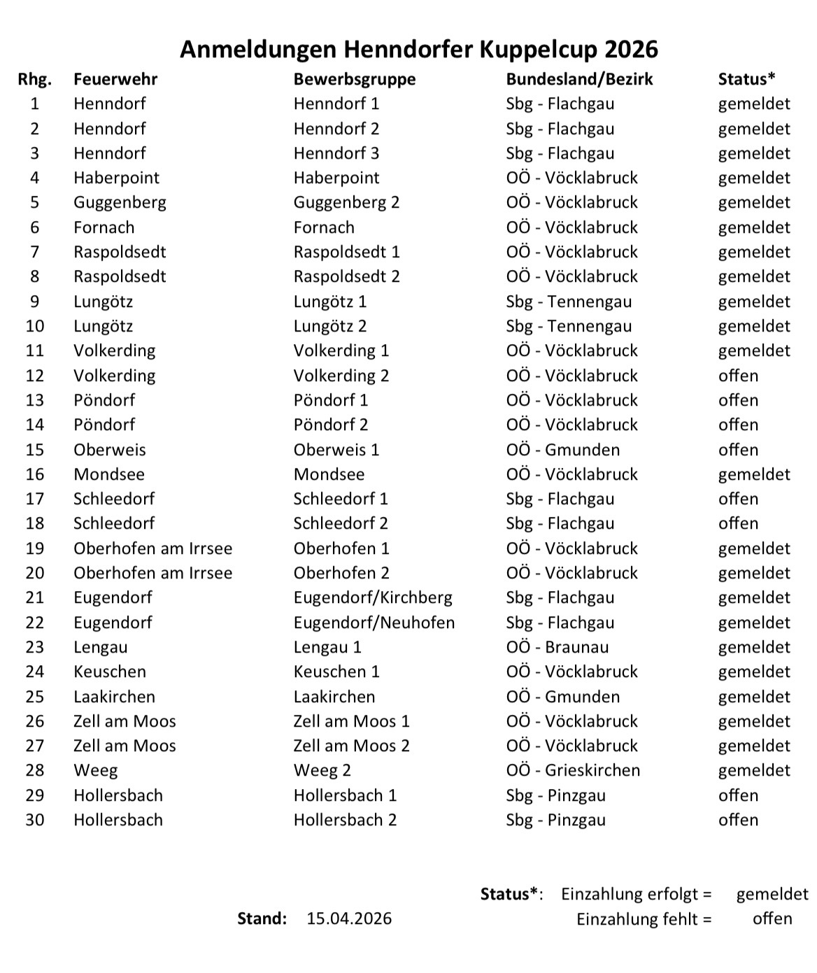 Auch dieses Jahr findet wieder der Henndorfer Kuppelcup statt, am Samstag, 23. Mai 2026, dazu laden wir euch recht herzlich ein. Über eine Teilnahme von euch würden wir uns freuen.